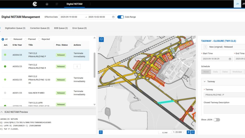 Digital NOTAM es mucho más que un concepto. En aviación, cada minuto cuenta, y cada vez más. Una pista cerrada, un cambio en un procedimiento de aproximación o una obra en la zona de rodaje pueden marcar la diferencia entre que un vuelo sea seguro y llegue puntual a su destino y un riesgo potencial que, además, puede suponer demoras o, incluso, su cancelación.